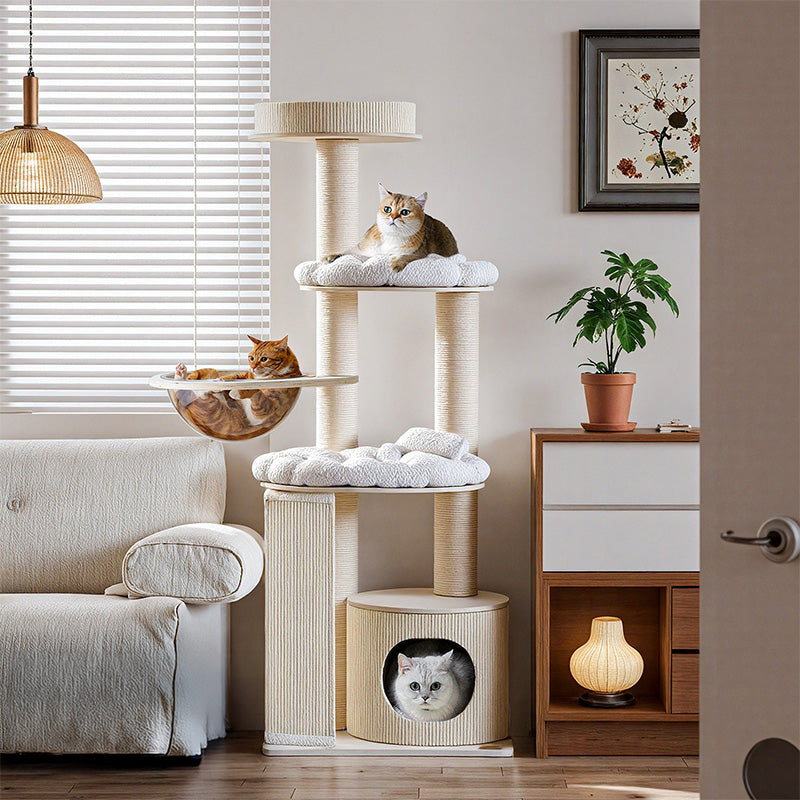 実はキャットタワーは、猫にとっての「運動スペース」であり、「安心できる居場所」でもあります。お部屋の中で自然な上下運動ができることで、ストレスの軽減や運動不足の解消にもつながる、とても大切なアイテムなのです。