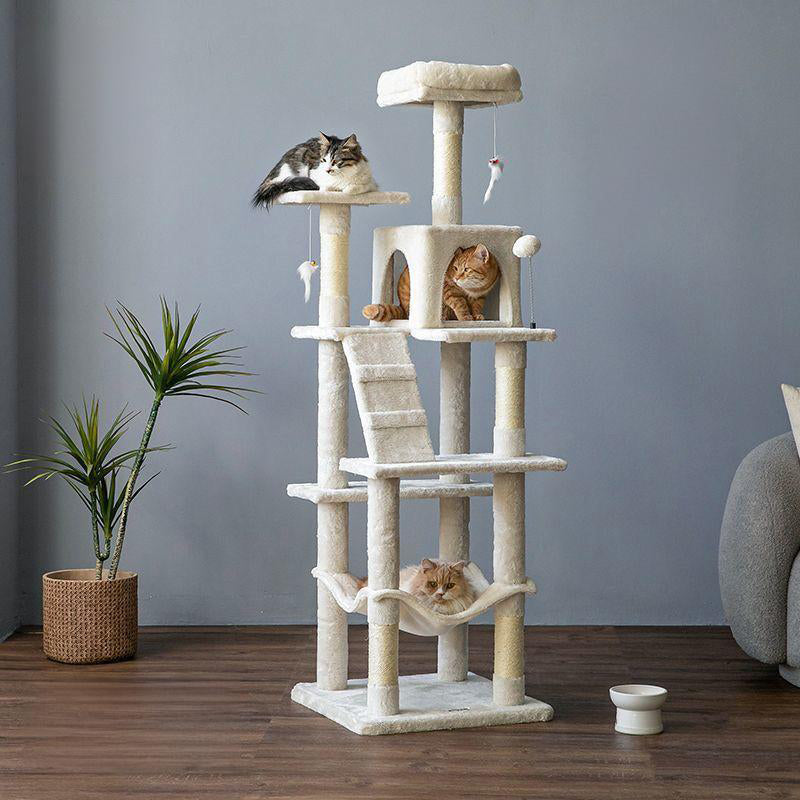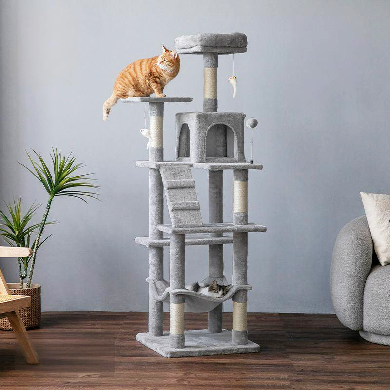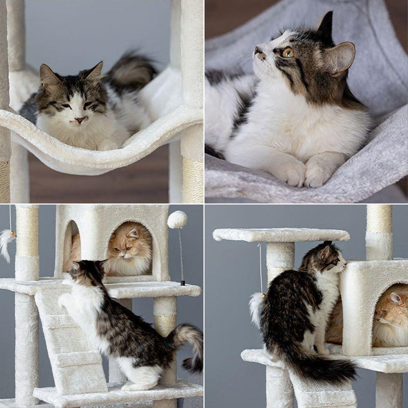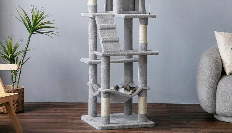 登る・隠れる・遊ぶ・休むを支える爪とぎ機能付きで寄り添う細やかな設計で、猫じゃらしやハンモックなど多彩な楽しみをプラスしました。