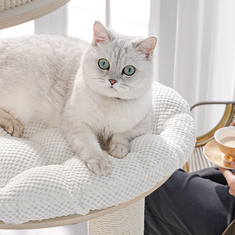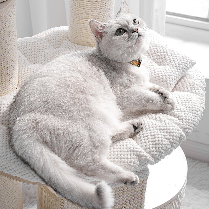 清潔感のあるホワイトトーンが、リビングや寝室などどんな空間にも自然に溶け込みます。猫ちゃんが触れるたびに柔らかさと温もりを感じられるデザインです。
