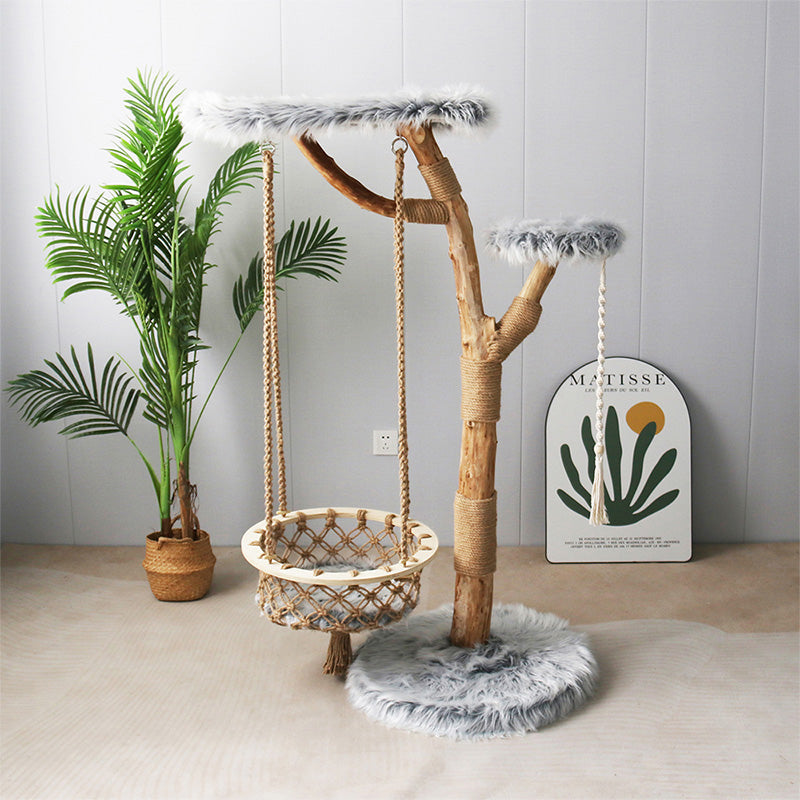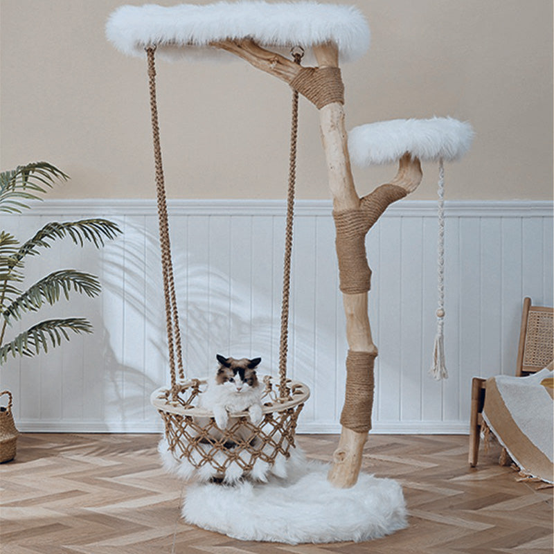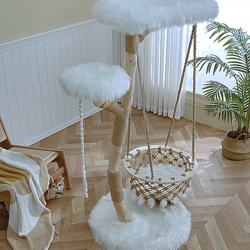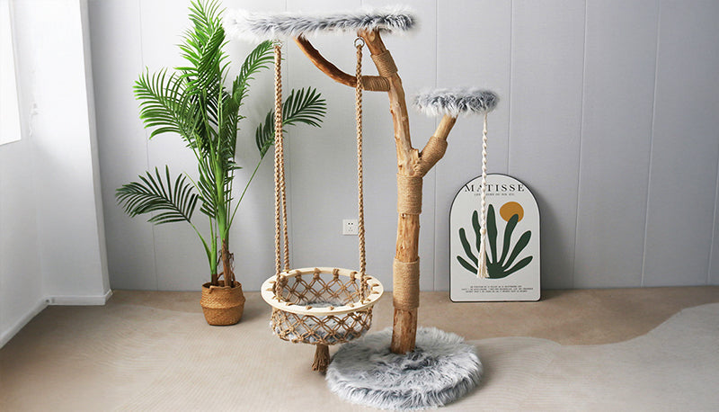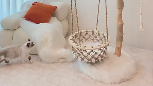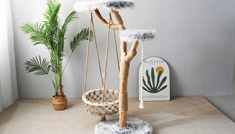 登ったり、爪を研いだり、吊りかごごで揺れながら遊んだり。サイザルロープでしっかり爪とぎができ、ブランコのように揺れるバスケットが猫の好奇心を刺激し、楽しい時間を演出します。