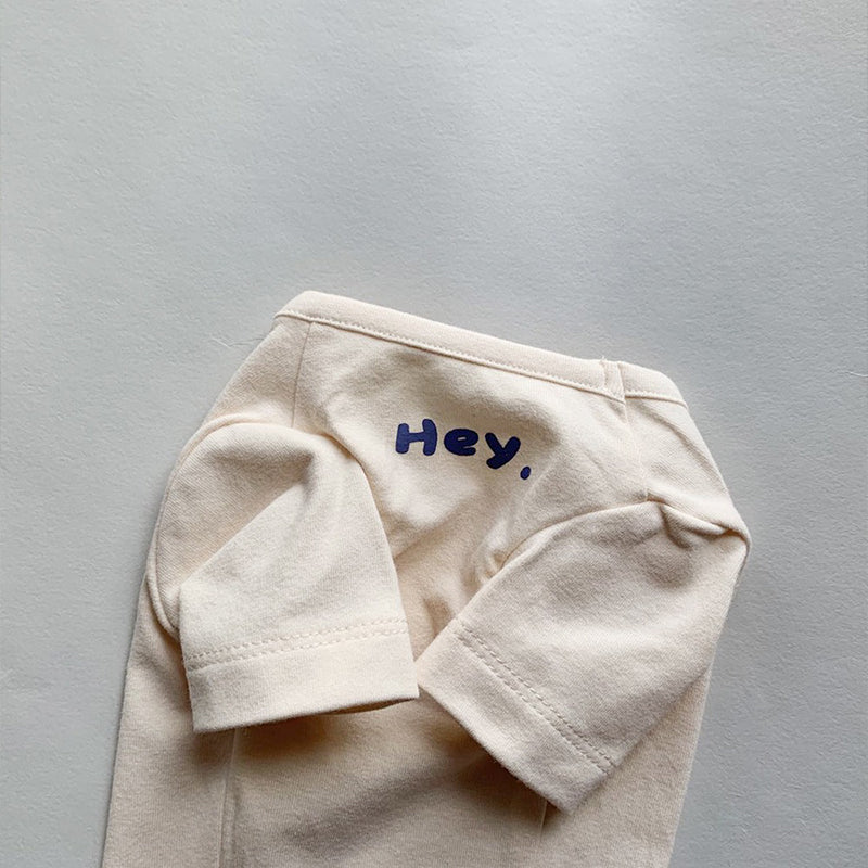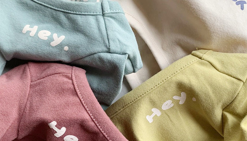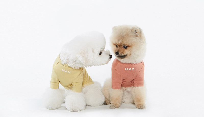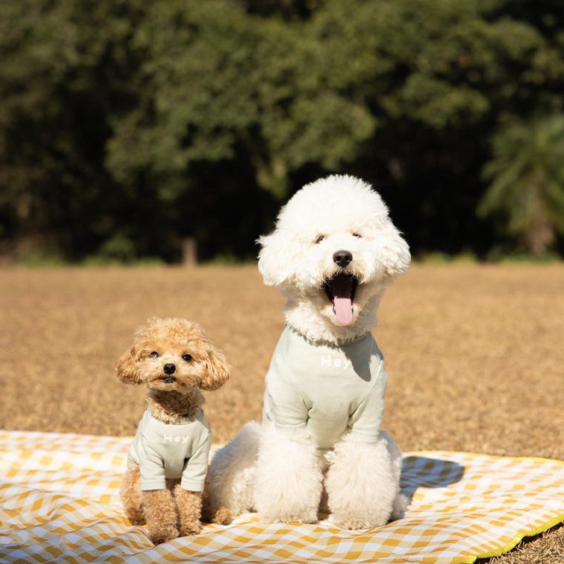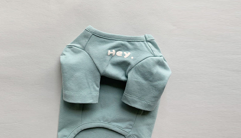 「Hey」や「Can you hear my heart beat?」といった遊び心のあるプリントが、シンプルながら魅力的なデザインを生み出します。動きやすさを考慮し、着脱もしやすいパターンで、ペットが快適に遊ぶことができ、散歩にも最適です。