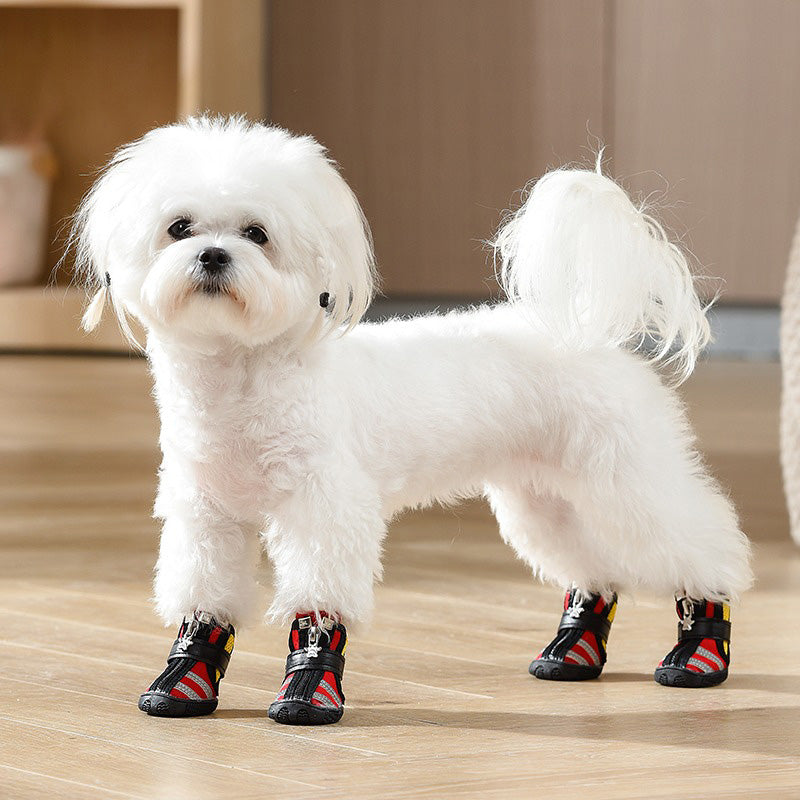 春夏のアクティブな季節にぴったりな一足で、都市部のアスファルトや暑い日差しから肉球を保護し、スタイリッシュなデザインが街中でも映えるアクセントに。