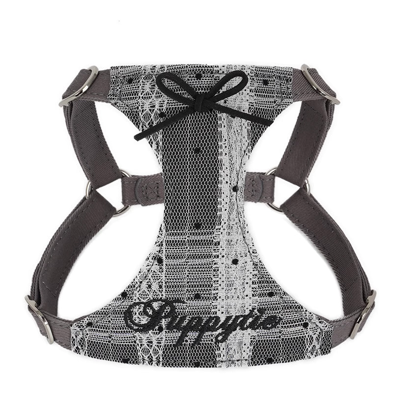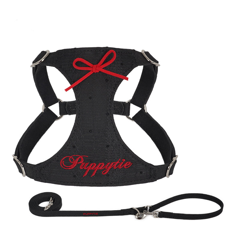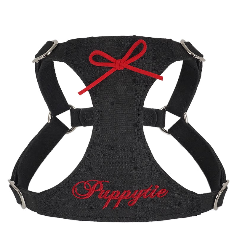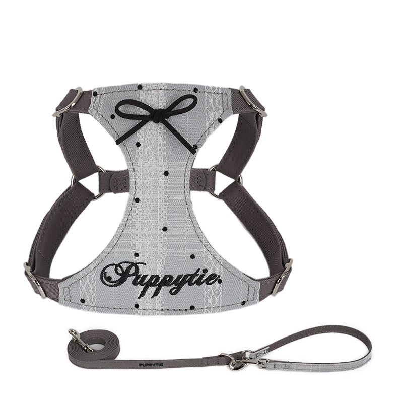 控えめなリボンと刺繍ロゴがアクセントとなり、クラシックなインテリアや洋風のガーデンにも溶け込みやすく、愛犬との優雅なひとときを引き立ててくれるハーネスです。