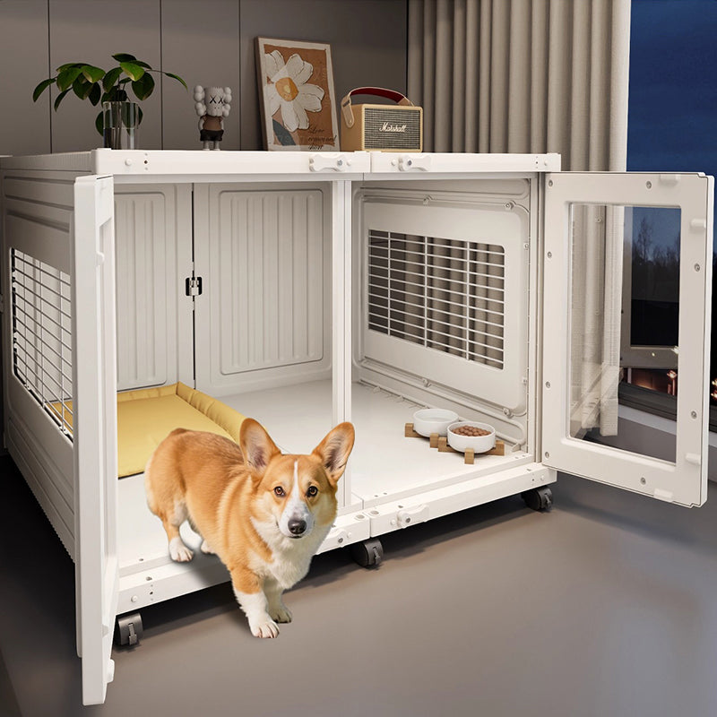 騒音を抑える静音キャスターと通気設計で、愛犬にとってもご家族にとっても快適。洗練された雰囲気と使いやすさを兼ね備えた、毎日に寄り添う上質ケージです。