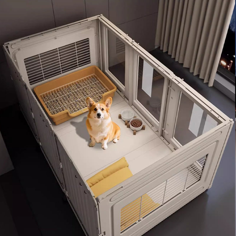 底面はやわらかいPP素材で足裏にやさしく、愛犬がリラックスして過ごせる快適設計。サイドドア付きでトイレ交換もスムーズに行え、細かな配慮が行き届いています。