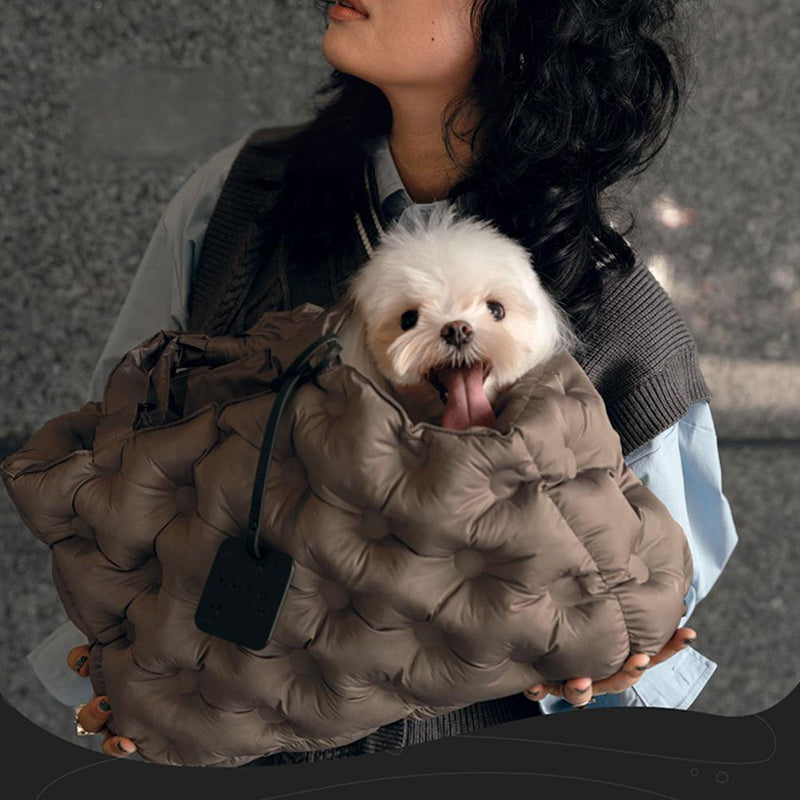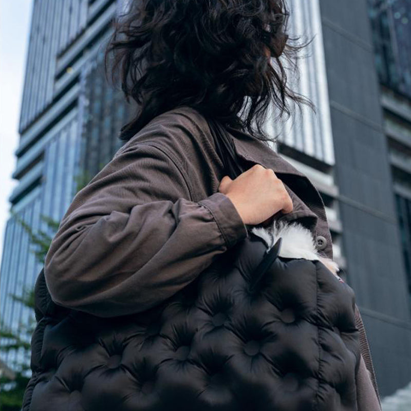 ショルダーバッグとして使用できるため、ペットと一緒にカフェやお買い物に行く際も便利。旅行やアウトドアにも活躍し、ペットが安全で快適に過ごせる空間を提供します。