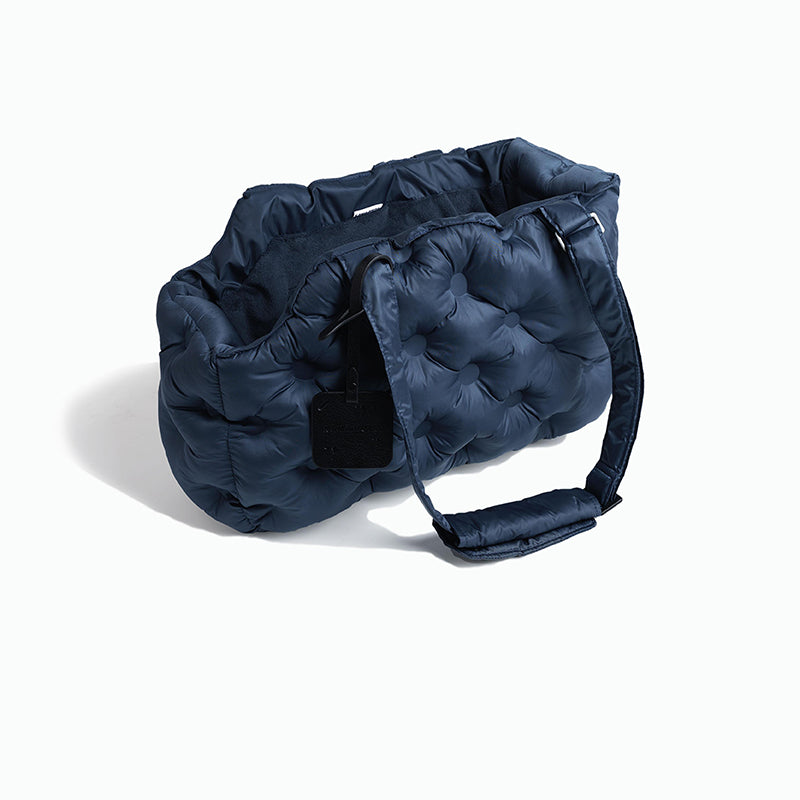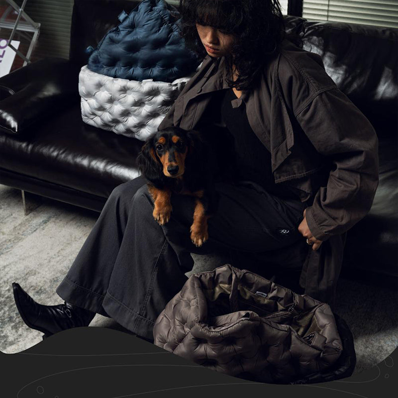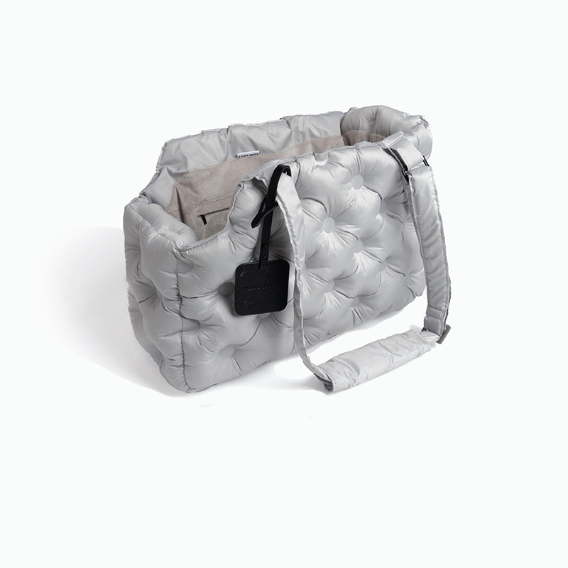 形状記憶生地を使用し、軽量で柔らかな手触りが特徴です。内部にはベルベットとポリエステルが使用され、ペットに優しい快適な空間を提供します。ショルダーベルトも形状記憶生地で、肩への負担を軽減し、長時間の使用でも快適にお使いいただけます。さらに、バッグは650gと軽量で、日常的な持ち運びが楽にできます。