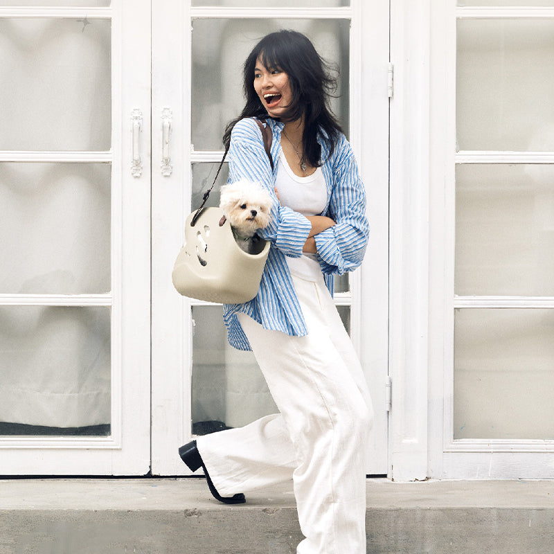 春夏の通勤やお散歩に最適な軽量ボディで、肩掛け/手提げの2WAYに対応し、ミニマルな流線とウェーブモチーフがデザイン性を高め、持ち歩きも快適かつ上品に見せてくれます。
