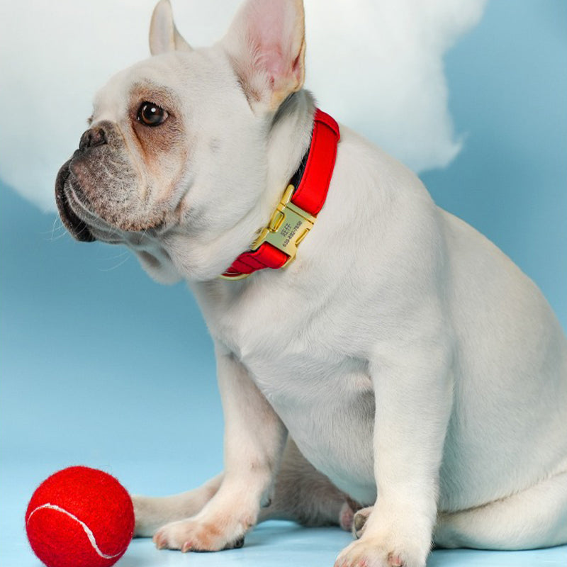 肌に直接触れる内側はふんわりとしたネオプレーンで仕上げており、摩擦を抑え、敏感なワンちゃんの首元にも安心してお使いいただけます。