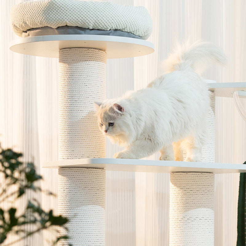 頑丈な紙管とサイザルロープの支柱がしっかりと支え、大型猫や活発に動き回る猫でも安心。滑らかな動線設計で、猫たちは自然に登り降りでき、リラックスも遊びも思う存分楽しめます。